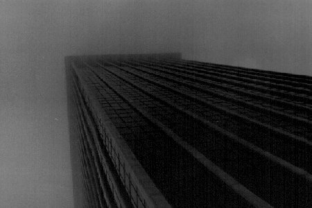 I took this photo in Of A Building in Memphis. I'm sorry to say that it came out crooked, but the diagonal of the building is still there. This particular photo was also taken on a different film than I usually use. I was very impresed with Ilford's HP5+ 400. It was able to handle the fog just as well as my normal film (which is much more expensive): Kodak TMX 400.